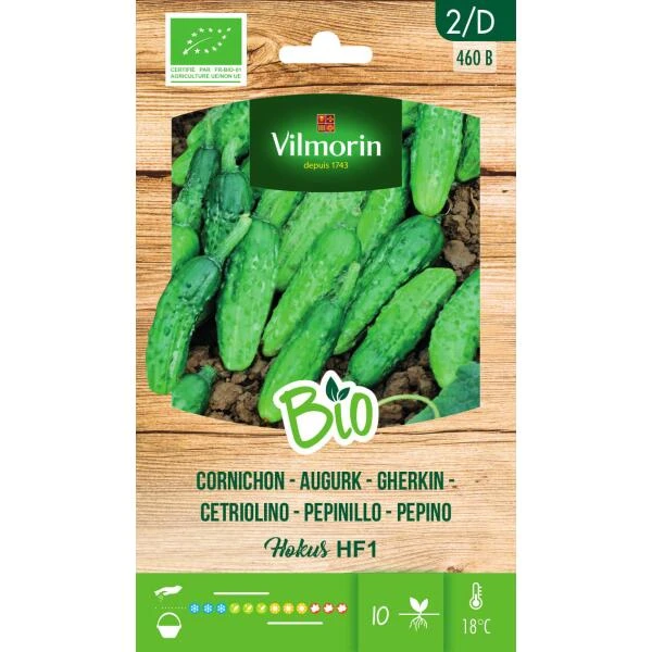 Augurk Hokus HF1 is een hybride ras dat een overvloed aan donkergroene vruchten vormt zonder stekels met een lekkere smaak. De biologische zaden van Vilmorin zijn van hoge kwaliteit. Augurken zijn ideaal om in te maken maar je kan ze ook verwerken in soep.