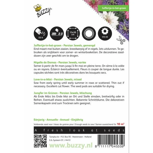 Nigella’s zijn de bekende eenjarige Juffertjes-in-het-groen. Dit mengsel in zachte pastelkleuren staat fantastisch in de border.
