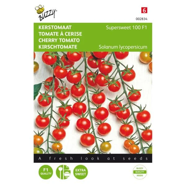 Tomaten kunnen ook buiten worden geplant mits op een beschutte, zonnige plek. Regelmatig zijscheuten verwijderen.