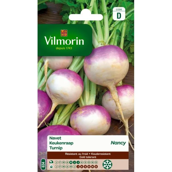 Keukenraap Nancy is een ijzersterke variëteit die zeer goed bestand is tegen koude en vormt ronde en zeer regelmatig gevormde raapjes met witte voet en violette kraag. Zeer fijnsmakend vruchtvlees. Keukenraapjes bevatten vitamines (A, B en C) en mineralen (fosfor en calcium).