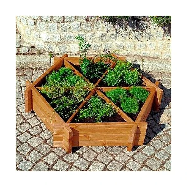 Houten kruidenbak (6-hoekig). Handige zeshoekige kruidenbak in duurzaam kwaliteitshout (grenen). Er zijn zes onderverdelingen voor zes verschillende keukenkruiden of andere gewassen. Maak met deze bak een aangenaam kruidentuintje op het terras of het balkon!