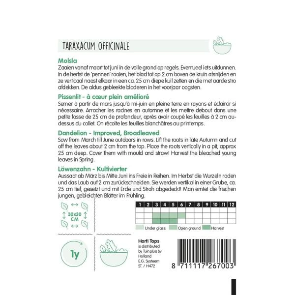 Vanaf maart tot juni in volle grond op regels. Plantafstand: 30 cm. De pennen worden gerooid in de herfst waarna de kruin 2 cm boven de pen wordt afgesneden. Nadien worden de pennen vertikaal naast elkaar in een kuil gezet van om en bij de 25 cm diep die met stro en aarde wordt afgedekt. De gebleekte bladeren worden in het volgende voorjaar geoogst.
