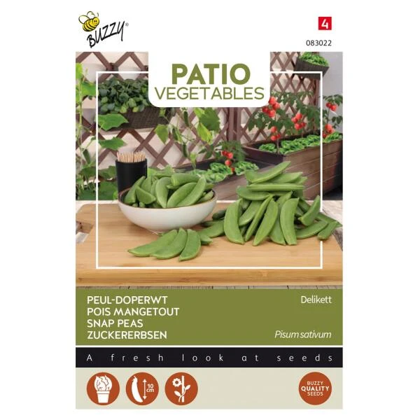 Van de Sugar Snap Delikett zijn niet alleen de peulen eetbaar maar ook de erwten zijn lekker om te eten. Als je ze jong plukt dan zijn ze sappig en zoet van smaak. Peulerwten of doperwten kunnen ook in potten, bakken of plantzakken geteeld worden.