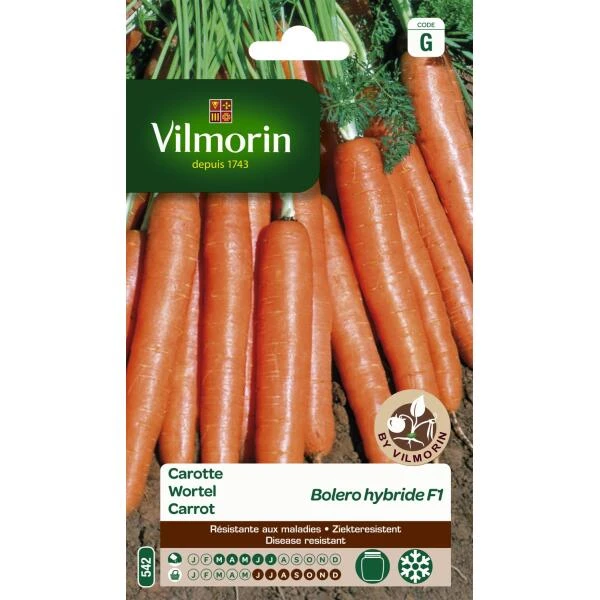 Deze variëteit Wortel Boléro HF1 is zeer opmerkelijk door de uitstekende tolerantie tegen meerdere ziekten en garandeert u mooie, cylindrische wortelen die uitstekend bewaren.